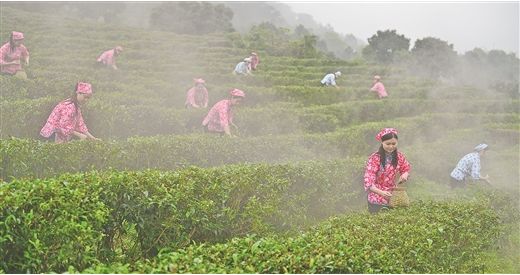 罗秀镇乐雅村也是种茶大村,村支书欧阳湖介绍,该村茶业合作社自去年成立以来,贫困户通过到茶园里打零工年人均增收4000多元。现在是春茶采摘季节,有20多名贫困人员参与采茶,每天务工收入在100元左右。