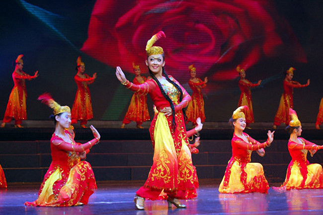 新疆自古就有“歌舞之乡”的美称。居住在这里的维吾尔、哈萨克、柯尔克孜、塔吉克、蒙古、锡伯、满、乌孜别克、塔塔尔等民族都能歌善舞。在长期的历史发展中,新疆各族人民共同创造了绚丽多姿的歌舞艺术,它伴随着丝绸之路的驼铃声,蜚声中外,名扬天下。新疆歌舞艺术历史悠久,早在公元前二世纪的汉代,于阗乐舞就已传入中原,深为人民喜爱。