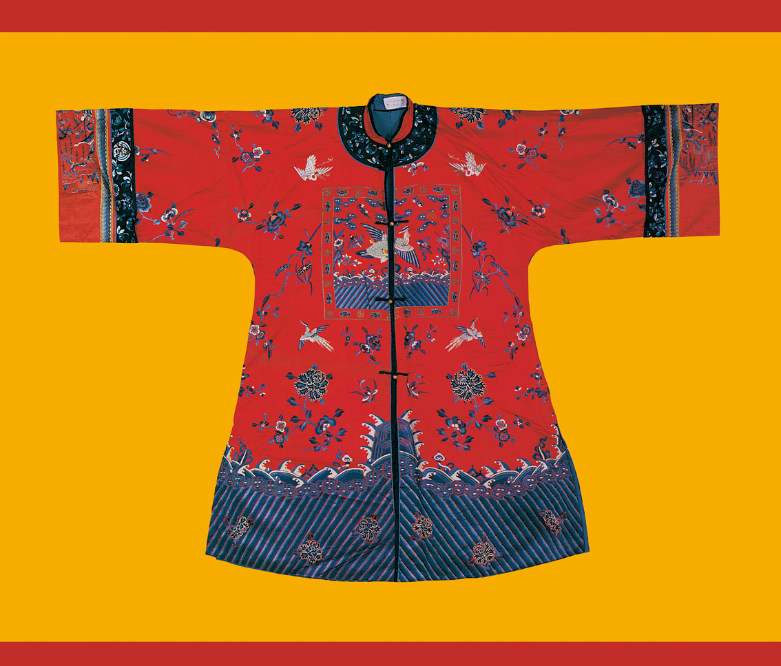 《史记·五帝本纪》载:“黄帝之前,未有衣裳屋宇。及黄帝造屋宇,制衣服,营殡葬,万民故免存亡之难。”在五千多年前的新石器时代仰韶文化时期,可能就产生了原始的农业和纺织业,开始用织成的麻布来做衣服。据传,黄帝之妻嫘祖发明了饲蚕和丝纺,衣冠服饰基本成制。殷商西周,冠服制度逐渐完善,春秋战国时期,衣冠款式走向多元,冠服制被纳入“礼治”范畴,从此汉族衣冠服制更加详备。中原地区还出现了胡服戎装,甚至相沿成风(图为汉族清代七品文官女朝褂,中央民族大学民族博物馆馆藏)。