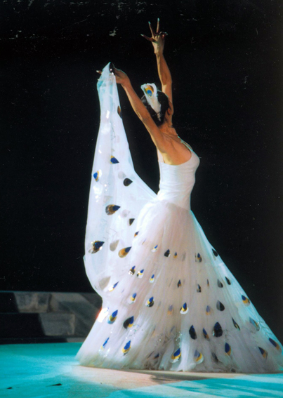 傣族孔雀舞动作有着严格的程式和要求:孔雀舞一般由一、二人或三人表演,多为模仿孔雀飞出窝巢、灵敏视探 、安然漫步、寻水、饮水、戏水、洗澡、抖翅、晒翅、展翅与万物比美、自由幸福。每个动作之前有起式,完了后有收式;有固定的步法、位置图及固定的动作组合;每个动作组合又有固定的鼓点伴奏。架子孔雀舞的舞蹈语汇尤为丰富,有“飞跑下山”“林中窥看”“漫步森林”“抖翅”“点水”等惟妙惟肖模拟孔雀神态的动作(图为傣族著名舞蹈家杨丽萍表演孔雀舞,刘军供图)。
