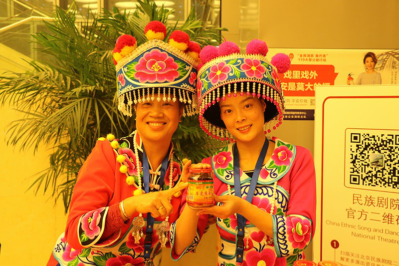 演出现场彝族姐妹展示楚雄特产 日孜也木/摄