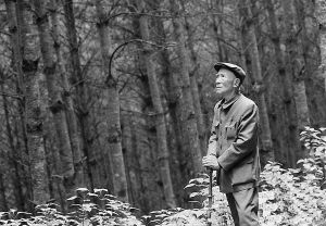 足迹。在如今的林场场部砖瓦小院下面,有一个展示牌,上面有一幅图片:一位老人略弯着腰,正对着一台望远镜在观察着前方的林海。他观察林木的长势,观察是否有火情发生。这些郁郁葱葱的树,都是他亲爱的孩子,从一棵一棵的艰难栽种,到冬去春来数十载寒暑的悉心呵护,在这座大山上,到处都布满了他的足迹。在小院的几间展室里,展示着一些旧图片和他曾用过的旧物,包括斗笠、撮箕等等。一位老人远去了,他的足迹留了下来,在这里,被人们一遍又一遍地阅读。