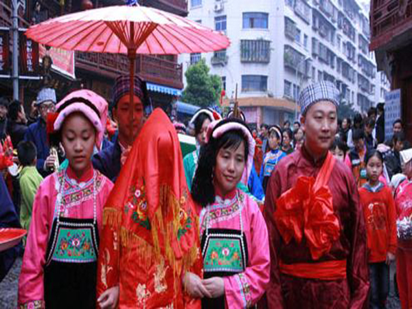 布依族婚姻的缔结一般都要经过议亲、说媒、订亲、结婚、坐家等几个步骤。受汉文化的影响,“命相说”在布依族婚姻缔结过程中也发挥着重要的作用。南方请媒人提亲之前,要先了解女方的生辰八字,请算命先生推算双方的生辰八字是相生还是相克,称为“合八字”。此外,挑媳妇要看人品、性格、手艺等,女方则要求南方机智、灵活、忠诚、孝顺、会耕田做工。