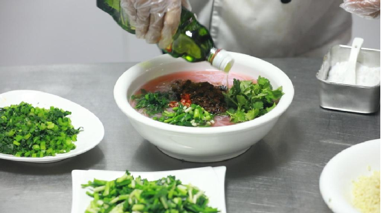 酸汤粉丝制作工艺简单快捷,只需在酸汤里直接加入食盐、味精、辣酱、辣椒等调料和芹菜、韭菜、香菜、大蒜等佐料后,放入浸泡好的粉丝里便可食用。
