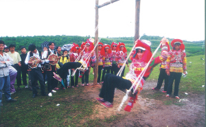 荡秋千是火把节上彝族姑娘最喜欢的一项活动