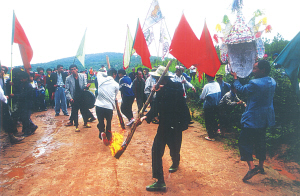 火把果红了,苦荞花开了,彝家人一年一度的火把节又到了。农历六月二十四至二十七,云南省禄丰县高峰地区的彝族火把节吸引了众多的海内外宾客。火把节期间,每天的活动各不相同,荡秋千、斗牛、民族歌舞表演、耍大刀、篝火晚会等,彝家人伴着月琴声欢庆日子一天比一天更红火。