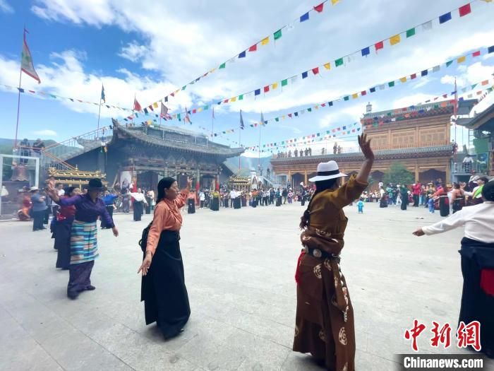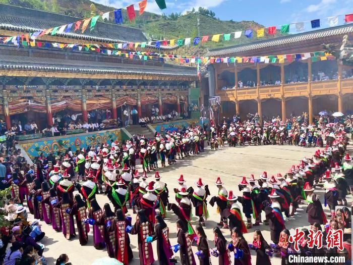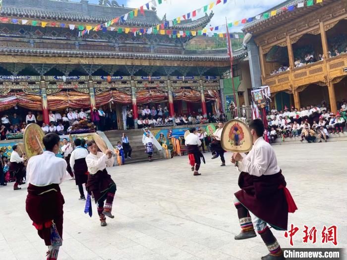 27日,青海黄南藏族自治州同仁市四合吉村,首批国家级“非遗”项目热贡“六月会”民俗活动举行,百余民众祈愿风调雨顺、五谷丰登。