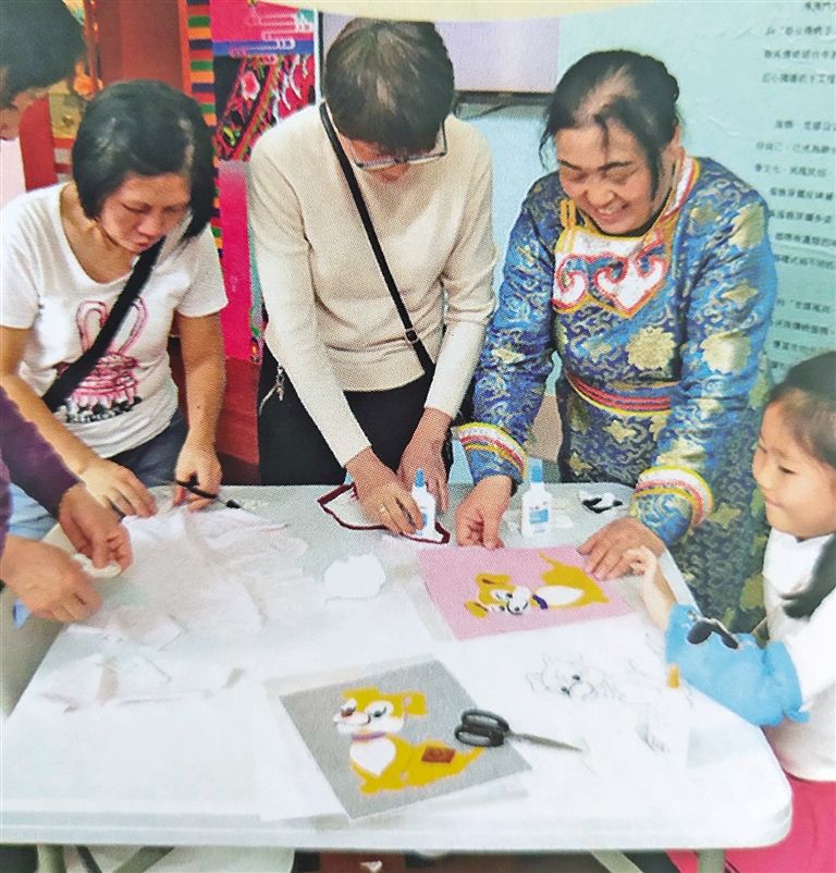 现在的她还担任着呼和浩特市文化人才(库)百人百组万人工程的布艺组组长,常被邀请参加各种展示技艺活动。她也常去敬老院、儿童福利院等地教授布贴画技艺,为中小学生义务授课。