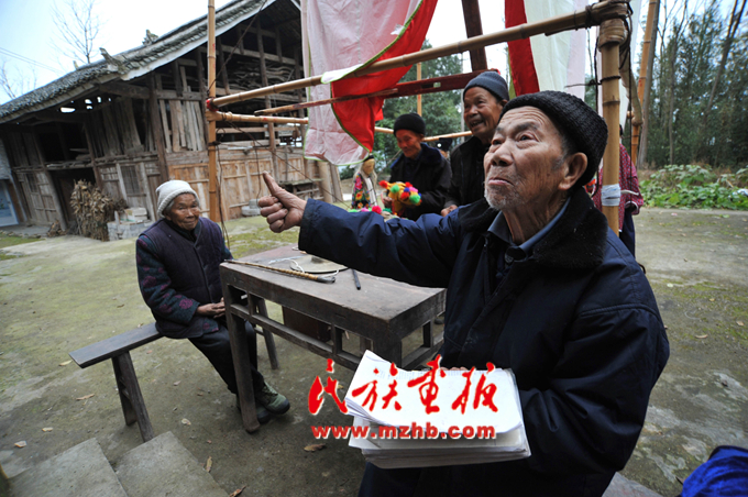 付正华记忆力惊人,虽然没有文化,但所有的说唱词都记在脑子里,他手上拿着的是县文化馆根据他的说唱整理的文稿