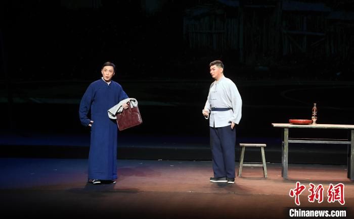 福建京剧院国家一级演员张萌在剧中领衔主演林祥谦,中国戏剧梅花奖获得者、程派名家孙劲梅饰演陈桂贞。 记者刘可耕 摄
