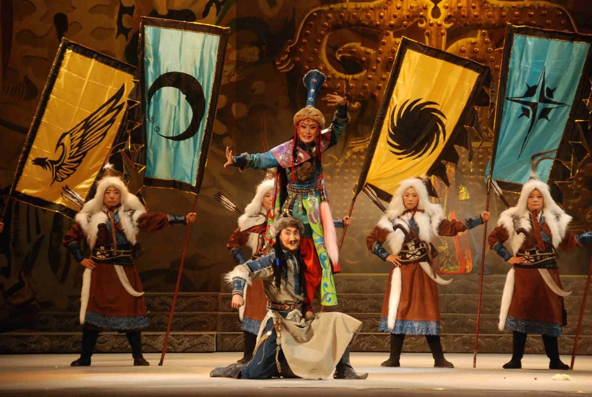 秦腔,因演出时以梆子击节,称梆子腔,流行于甘肃各地。明清以来 “西秦腔”、“陇西梆子”都是其早期称谓,遍布全省。演出剧目主要从皮影戏移植而来,剧目多达1500种,传统连台本戏是甘肃秦腔一大特色。以神鬼戏、忠烈侠义戏最多,多以净、生为主要角色。分为东路、南路和中路三大流派。表演崇尚做派,讲究神韵、气势,净、须生行的表演中成就最大。音乐属板腔体,在唱腔上的特点是音域较窄,旋律直朴,依方言行腔。