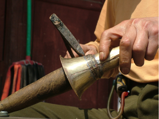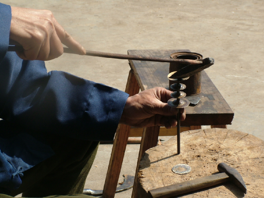 桐木寨唢呐制作为纯手工制作,需要四十余道工序才能完成。虽然唢呐制作历史悠久,对其制作技艺的研究已有不少文章,但真正的唢呐制作依然主要靠师徒之间的口传心授,需要凭借良好的悟性和长期的实践体会及感觉才能完全掌握,难于言表和形成文字。对捶、打、钻、焊等工艺没有具体的理化指标,全凭经验把握。