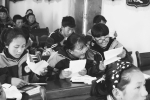 学生们在阅读书信。任鹏飞摄。