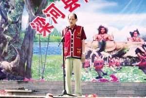 杨正仁在云南省梁河县佤族新米节庆典上演唱。布饶依露摄