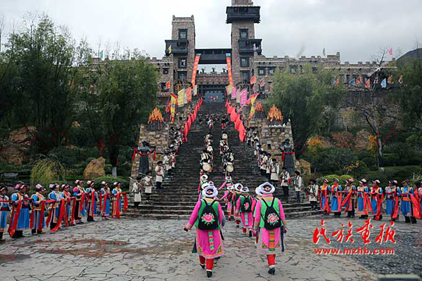 每天上午,古城工作人员盛装出行,开门迎接游客