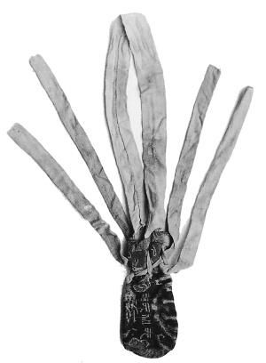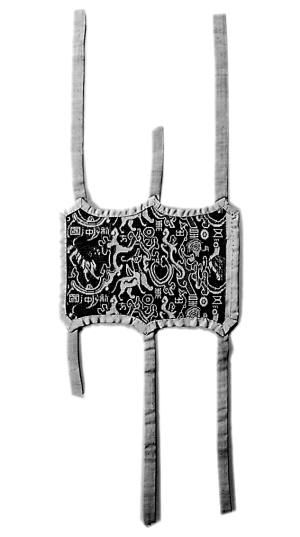 “五星出东方利中国”锦护臂,东汉时期,民丰县尼雅墓地出土。