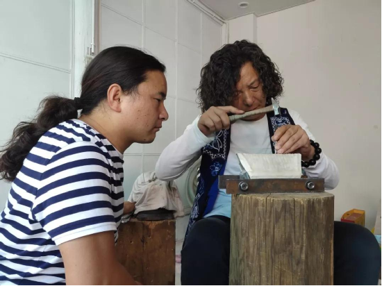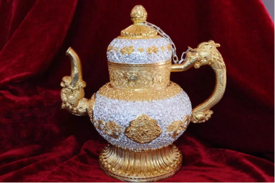 稻城藏族老翁洛绒阿尼是他的第三位老师。1988年已独立带徒的母炳林,思考再三,决定再次出门,而这次要去的,是他将会呆十一年的第二故乡——四川稻城。藏区对金银铜器的需求量很大,但同时这里也是当时出名的苦寒之地,语言和环境是对一个人心性的巨大挑战,三十年前的离家千里,是没有电话和互联网一解乡愁的。好在,他都坚持下来了。也是在这个时候,母炳林遇到生命中的第三位老师:洛绒阿尼。80多岁的阿尼师傅是当地技艺拔尖的黄金锻造师,母炳林打制出的银壶银碗曼扎盘,总是交给阿尼师傅完成后续鎏金工艺,从不外传技艺的保守师傅,却在朝夕相处中渐渐肯定眼前的这位白族小伙,将黄金提炼和锻打等精密工艺悉数教授给他。技艺精湛的母炳林慢慢在当地站稳脚跟,镶金坠牌的气派腰带、蜜蜡点缀的藏式银刀、寺院祭供的尊贵法器,都成了他手里打制的日常,母师傅也成了老乡们的近邻和挚友。