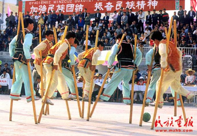第三届全国少数民族传统体育运动会男子高脚马表演