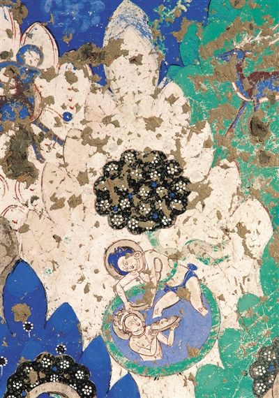 克孜尔石窟第118窟主室券顶山峦、池水。