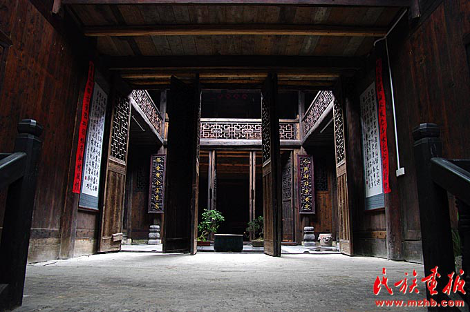 从酉水码头上岸,首先映入眼帘的是一幢气势宏伟极具土家族风格的城楼。城楼皆为木质结构,设计精妙。楼顶挂有著名导演谢晋题写的“芙蓉镇”牌匾,穿过这座标志性建筑,便是五里石板街。石街历经千年风雨的洗刷和行人的踏磨,早已光滑如镜。石街两侧店铺鳞次栉比,有开酒店的,卖小吃的,经营旅游商品的,也有专卖地方土特产的,虽然拥挤,但整个街面布局得体。走在这狭长的石板街上,那些上百年的老木屋随处可见,这些老祖宗留下的物件,现在都被当地政府当作文物挂牌保护了起来。