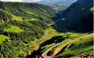 在拥有草原、冰川、雪山、湖泊等多种地貌形态的新疆,公路穿行或盘绕其间常常会有种时空错节的感觉。特别是独库公路南北段地貌差异较大,由于北段植被覆盖率相对较低,多苍凉、险峻之感;而南段草场丰美、山林茂密,山河秀美、生机盎然。