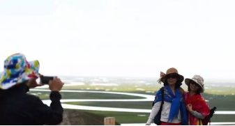 根据路牌指示经巴音布鲁克走到火烧桥岔路口后,往火烧桥方向走几公里,就能看到小型“九曲十八弯”。清晨或黄昏时分,水流中会映射出数不清的太阳,这里是日出日落的最佳拍摄点。来个背影或剪影也很棒。