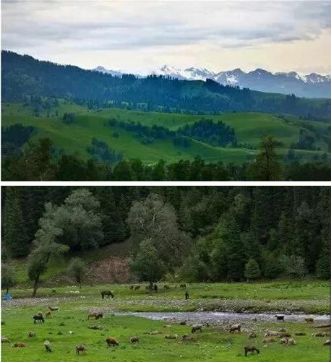 加上独库公路受海拔影响、道路起伏变化较大,山里又气候多变、多见云雨。赶上特殊天气时,山脚晴空万里、山上雨雪霏霏,半山腰山花烂漫、山顶白雪皑皑……一路走来、一天之内就能走遍春夏秋冬四季风光。