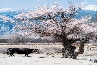 我们的知识常常始于刻板印象,那曲在我们的心目中就是羌塘草原,就是莽莽苍苍、地老天荒没有一棵树的高原;是原始的巨大湖盆的孑遗,浅浅的地表土层之下,是巨大的鹅卵石和粗粝的沙粒;延绵的雪山低低地趴在天际。但那曲也有那么一个桃花盛开的地方。