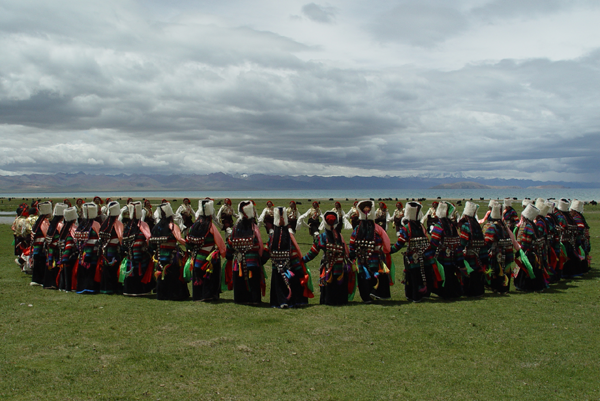 锅庄舞,又称为“果卓”、“歌庄”、“卓”等,藏语意为圆圈歌舞,是藏族三大民间舞蹈之一,主要分布于西藏昌都、那曲,四川阿坝、甘孜,云南迪庆及青海、甘肃的藏族聚居区。