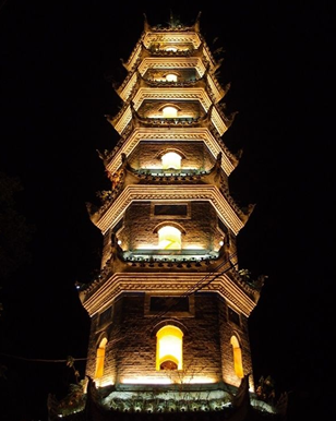 万名塔位于东岭山麓的沱江之滨,东靠雕梁画栋的遐昌阁,西望气势若虹的风雨桥。现塔高21米,为大级六角砖塔,塔面饰以彩绘、雕塑;六通皆有丰月拱门窗。