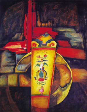 和向东:7年前认识北京至高美术馆馆长林青先生后,他建议用油画来表现东巴文化,从那时起,没画过油画的我开始了油画的创作。说实话,我一直认为不适合用油画形式来表现东巴文化,不过经过多年的尝试,我现在有了一种“重彩油画”的意味了,比较讲究画面的偶然性。云南重彩画派的斑斓厚重和富丽的色彩表现效果我一直很迷恋,我力图想把这些色彩感觉用油画语言表现出来,当然还处在摸索尝试中。虽然都是油画,但与专业油画家的作品相比,我的“油画味”不是很浓,也许这就是我的作品特色吧!