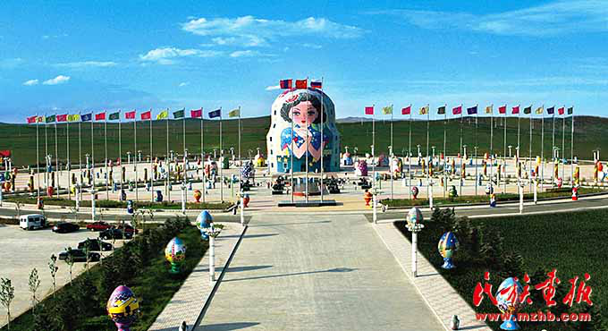 中国最大的陆运口岸城市满洲里的套娃广场彩旗飘扬(呼伦贝尔市委宣传部供图)