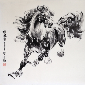 蒙古族素有“马背上的民族”之誉称。特木其勒出生在科尔沁草原牧民人家,从小与马结下了不解之缘。牧马、骑马,长期与马为伴,闲暇时用树枝做笔,大地为纸,照着他的马群描绘着他心中的骏马图。画马的“童子功”和得天独厚的生活环境在不知不觉中为他成为一个功底扎实的画马画家奠定了坚实的基础。