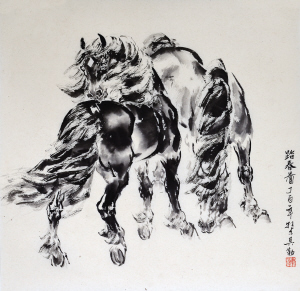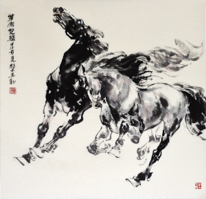 版画《牧民之家》《万马奔腾》,国画《双骏图》《雄风图》等作品,被加拿大、日本、美国、俄罗斯等国机构或多个人收藏。