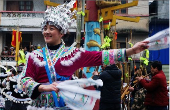 百鸟衣传说由一百种鸟儿的羽毛装饰而成,人们拉鼓拔河比赛绳子中间的鼓上有一双牛角,团队奋力拉扯寓意争抢人寿年丰,芦笙歌舞则是苗族群众逢年过节必须表演的民族核心文化。