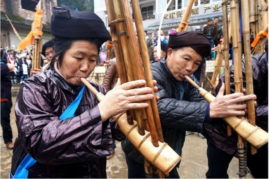 2019年2月16日,农历正月十二,融水苗族自治县杆洞乡举行拉鼓比赛、吹芦笙、跳芦笙舞等丰富多彩的民族传统活动,欢庆一年一度的传统佳节——百鸟衣芦笙拉鼓节的到来。