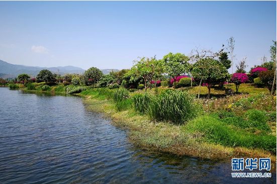 近日,位于云南省红河哈尼族彝族自治州石屏县异龙湖国家湿地公园呈现出一片春天的气息,铺就了一幅优美动人的绿色画卷。