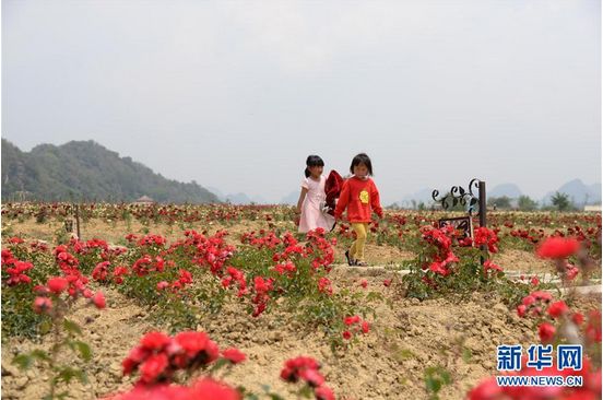 4月14日,游客在玫瑰花海中赏花游玩(新华社记者 浦超/摄)