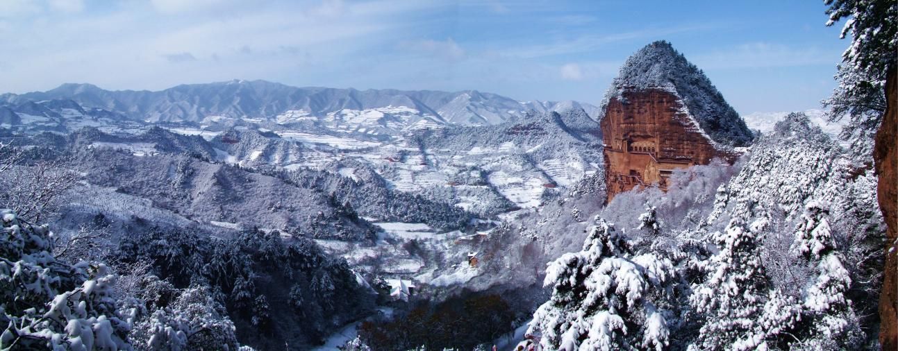 有着“陇上林泉之冠”之称的麦积山风景名胜区,为国家5A级旅游景区,占地215平方公里,由麦积山、仙人崖、石门、曲溪、温泉五大景区180多处景点构成。麦积山又名麦积崖,海拔1742米,山高142米,孤峰崛起,形如麦垛。山峰西南面为悬崖峭壁,著名的麦积山石窟就开凿在这峭壁上。麦积山石窟始建于十六国后秦,历经北魏、西魏、北周、隋、唐、五代、宋、元、明、清等十余个朝代不断开凿与修缮,现保存窟龛221个,泥塑、石刻7800多件,壁画1000多平方米,北朝崖阁8座,生动展现了当时的雕塑、绘画、建筑水平和艺术文化造诣,被誉为“东方雕塑陈列馆”,为中国“四大石窟”之一,入列世界文化遗产名录。麦积山周围风景秀丽,山峦上密布着翠柏苍松、野花茂草,云雾阵阵,远景近物交织在一起,构成了一幅美丽的图景“麦积烟雨”。