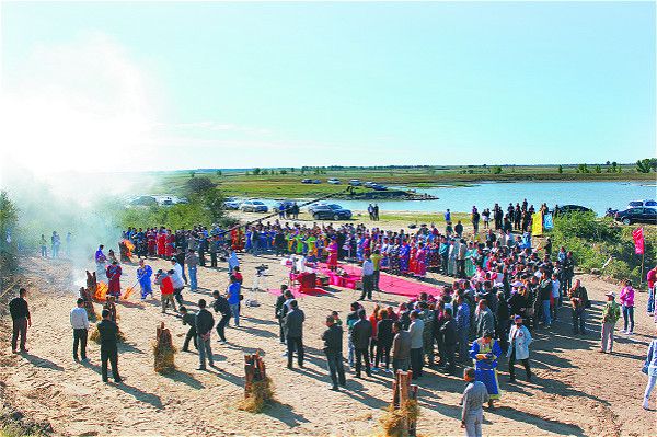 六、祭尚西。尚西是独棵大树,也称神树,每个地区的蒙古族,几乎都有自己部落的神树。每年祭祀一次,没有固定时间。祭祀尚西时,全部落男女老少集于神树之下,用鲜花或彩布条将神树装饰一新。然后用“全羊”做祭品,由主祭人向尚西洒酒。有的地方还推举在群众中有威望的长者扮做“尚西老人”,端坐于神树之下,由主祭人向他敬酒,进献奶食品,“尚西老人”再把奶食品分发给所有参加祭祀的人。然后以欢快的歌舞结束。