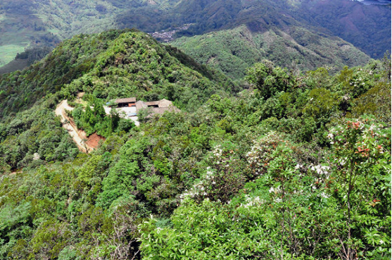 海拔2000米的青龙山位于云南梁河县芒东镇东部的平坝村,距县城35公里。山腰有百年古刹一座,唤“青龙寺”,因山顶有一块巨石像凌空飞舞的巨牛,又称“石牛寺”,是梁河县有名的佛教圣地,它隐藏在云雾缭绕的崇山峻岭之中。