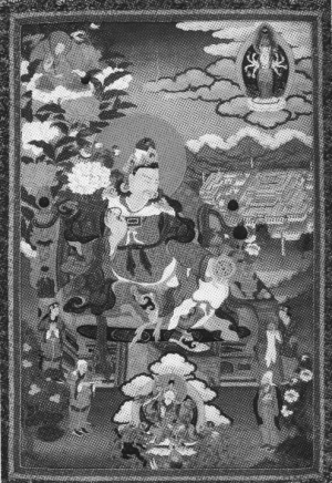 “唐卡”为藏文音译,它是一种用纯金、银和天然矿物颜料画在布、皮革和纸上,或者刺绣在丝绸上的彩色卷轴画,主要以表现宗教题材为主。