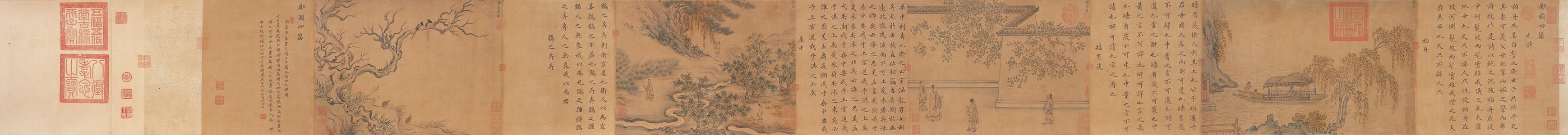 杨士奇鉴藏印:士奇之印、杨氏家藏。项元汴鉴藏印:神品、项元汴印、子京、墨林秘玩、神游、子孙永保、子京父印、墨林山人、虚朗、神奇、桃花源里人家。梁清标鉴藏印:蕉林梁氏书画之印、家在北潭、蕉林书屋、河北棠村、蕉林鉴定、苍岩、棠村审定、苍岩子、蕉林、观其大略。清室鉴藏印:石渠宝笈、养心殿鉴藏宝、乾隆鉴赏、三希堂精鉴玺、宜子孙、乾隆御览之宝、五福五代堂古稀天子宝、八徵耄念之宝、嘉庆御览之宝、石渠继鉴、宣统御览之宝。