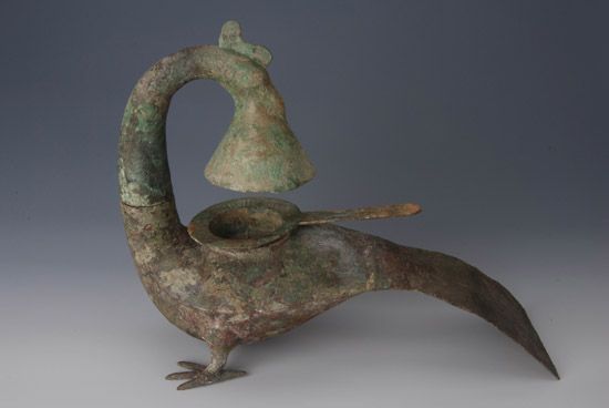 一是造型独特。该灯凤鸟造型,灵巧优美、活泼可爱,寓意吉祥,富于浓郁的生活气息。