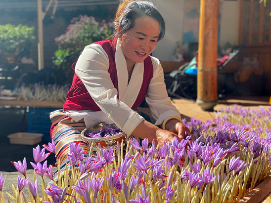 “今年,其宗村的藏红花参加云南省十大名药评比获得第六名,成为云南省十大名药之一。今后,其宗村党总支计划依托藏红花产业,发展体验式、定制式、生物大健康式旅游,将传统劳作内容融入现代旅游业发展中,努力实现生物大健康、民宿、传统劳作、旅游有机结合,促进乡村高质量发展。”其宗村党支部书记赵普华说。