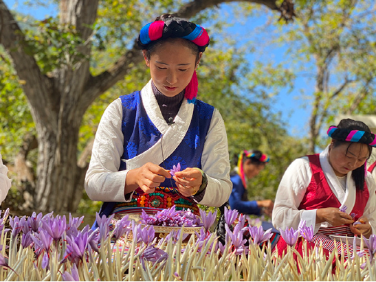 金珂公司负责人和寿祥说:“刚开始引种试种藏红花时,没有多少农户愿意跟我们一起种,我们采用‘党总支+公司+合作社+农户’的种植模式,积极发动党员,让党员户带头试种,通过一年的种植,带头的党员户获得了不错的收益,观望的农户纷纷加入种植队伍,目前已有80户参加种植。未来5年,公司打算推广到66.67公顷,并研发系列产品,让更多的农户从中得到很好的收益。”