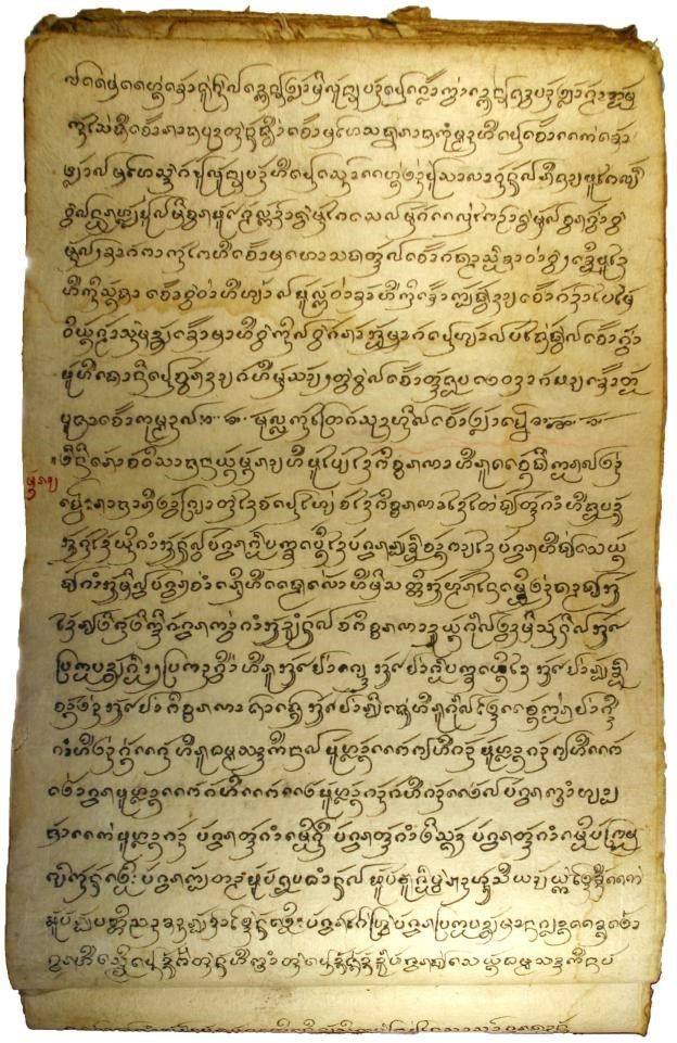 傣文源于古印度的婆罗米文。 婆罗米文的变体巴利文伴随佛教经斯里兰卡传到东南亚各地,被东南亚各民族所吸收后,傣族先民又集东南亚各种文字之所长创制了各种泰文(图为傣文《芒莱法典》页面)。