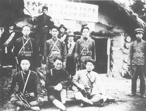 这张照片是1935年8月20日由上海抗日救国会武装部代表王克道拍摄的,地点是在黑龙江省方正县大罗勒密沟里陈家亮子。照片记录了东北抗日同盟军(东北抗联前身)第四军在陈家亮子成立地方人民自卫队纪念大会的场景。照片前排中为东北抗日同盟军第四军军长李延禄,后排站立最高者是通信员何畏(原名何永祥),何畏左侧戴帽者为战士孟庆海。何畏和孟庆海都是鄂伦春族。