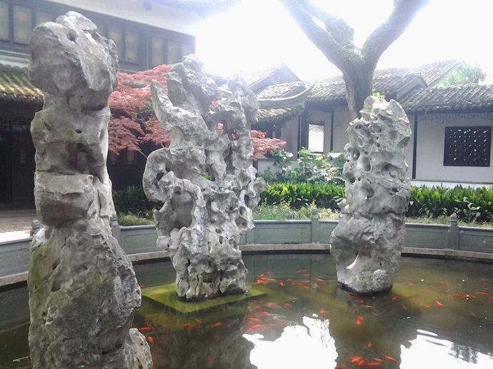 昆石:园林内马鞍山中,其色白如玉,故马鞍山又名玉峰山,至今已有数千年历史。昆石天然多窍,色泽白如雪,黄如玉,晶莹剔透,体态玉洁冰清,千姿百态,形状无一雷同,十分奇巧。它具有皱、瘦、透、漏、伛诸特点,故又名巧石、玉石、玲珑石。历来被视为艺术欣赏、案头清供及园林用石的佳品。