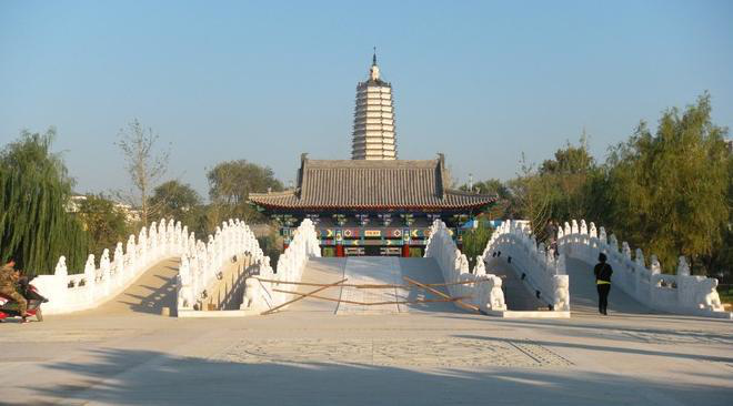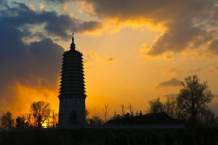 无垢净光舍利塔,是沈阳市现存较古老的建筑之一。从前,这里东连昭陵,南临沼泽,古色苍然,“塔湾夕照”为沈阳八景之一。该塔为13层密檐八角形砖塔,高约33米。整体可分地宫、塔座、塔身、塔檐、塔刹5部分。